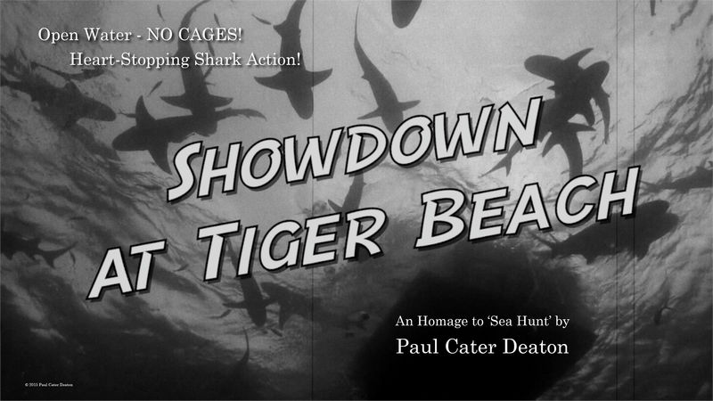 As an homage to Lloyd Bridges, Sea Hunt, and the black & white television shows of his youth, documentary filmmaker Paul Cater Deaton brings us Showdown at Tiger Beach. On location 25 miles off the coast of Grand Bahama, PCD joined an expedition with Epic Diving and shark shooter extraordinaire, Joe Romeiro, for some of the most high-voltage diving of his life. At times surrounded by 12 large tigers and dozens of other sharks, the divers found a target-rich environment for filming animal behaviors. Working in open water and without cages, Deaton captures heart-stopping human interaction.